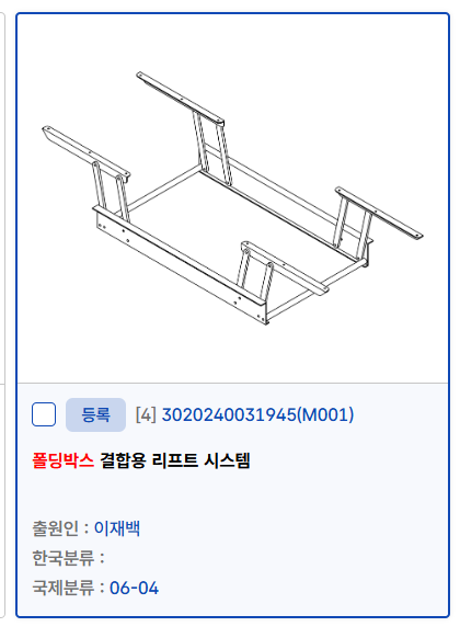 디자인 카테고리 전체기계장치전기전자정보통신토목건축생활도구식품농수산금속화학섬유의학BM열린 분류 기타 관련링크 본문 폴딩박스 결합용 리프트 시스템 등록번호재30-1304438호 분야디자인 분류기타 판매가50,000,000 원 권리기간2035 년 4 월 28 일 간략설명 디자인 등록 완료 기존 여러가지 캠핑용 박스에 장착하여 테이블로 사용하는 시스템 입니다 여러가지 박스에 장착 가능 펴고 접기가 쉽습니다 연결이 가능해서 넓게 사용 할 수 있습니다 비슷한 제품이 없어 독점 판매에 유리 합니다 첨부파일 검색 목록