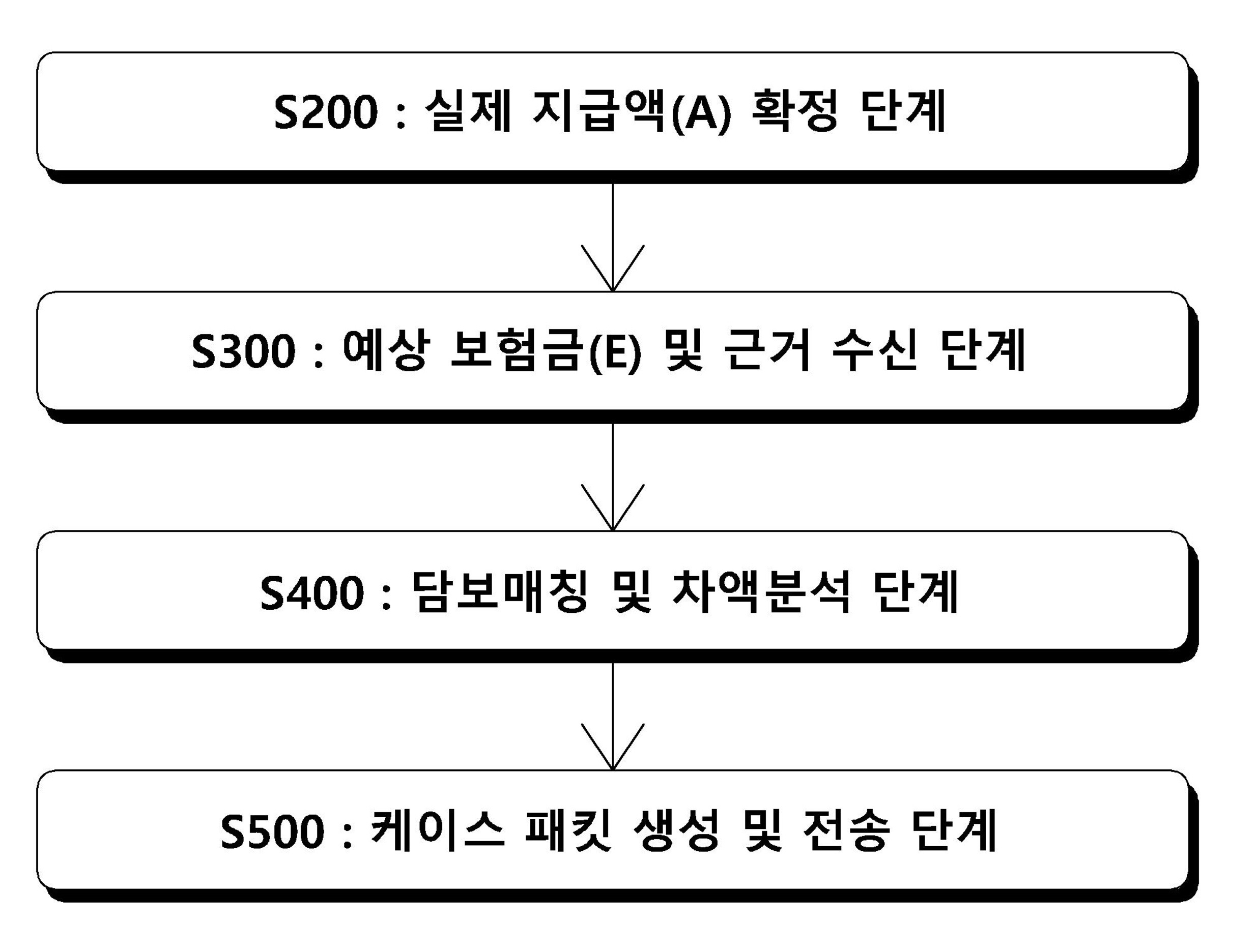 담보 단위로 상기 예상 보험금(E)과 상기 실제 지급액(A)을 자동 매칭하고 차액(D=E-A)을 산출하는 단계(S430, S440);