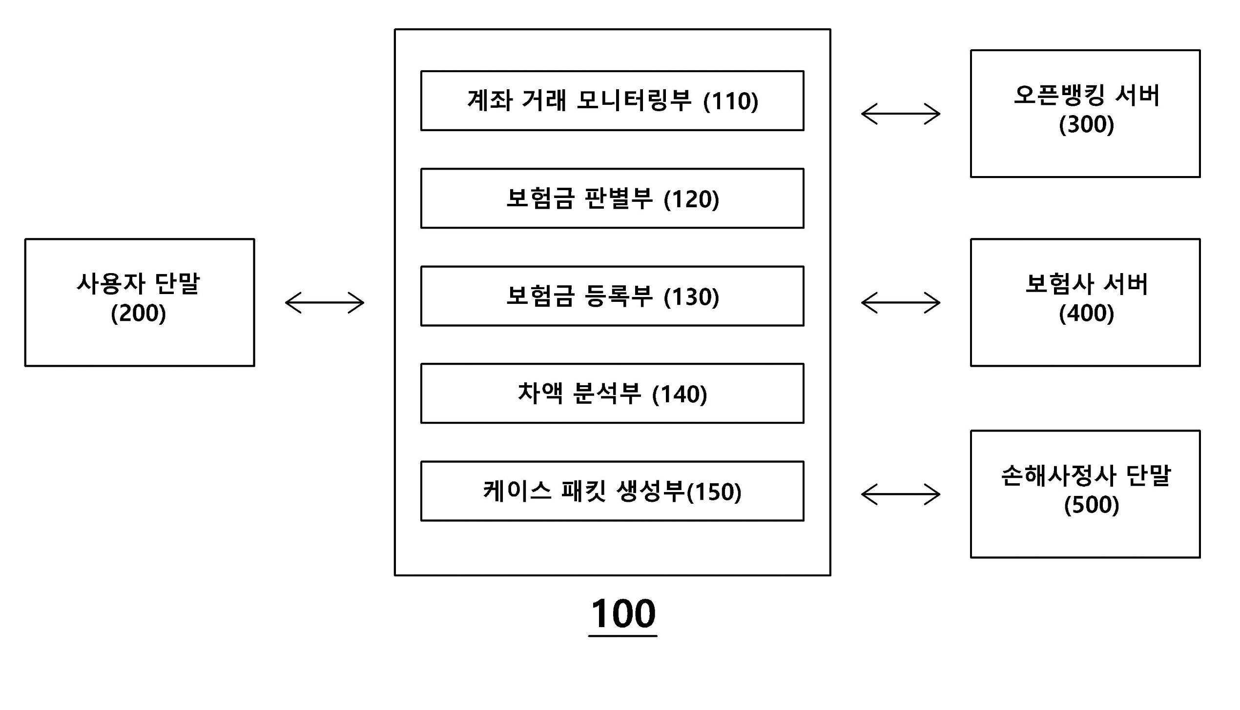 상기 계좌 거래내역의 특징 및 통지서(이미지, 캡처, 메시지)에 대한 광학문자판독(OCR) 결과 및/또는 사용자 입력에 기초하여 보험금 지급 거래 여부를 판별하고 담보별 실제 지급액(A)을 확정하는 보험금 판별부;